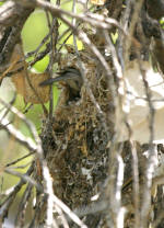 30-9511 Bushtit coming out of nest (out of focus, sorry), Prospect Park,