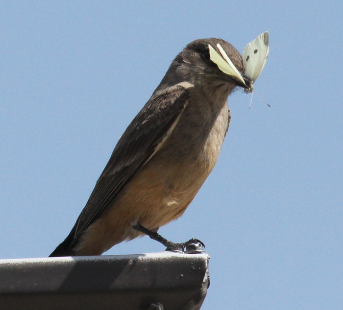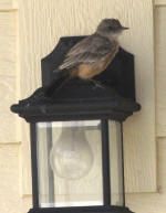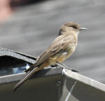 5-72011 Say's Phoebe female with worn plummage comes back to nest every