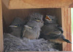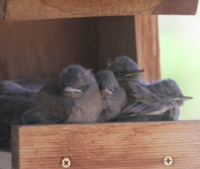 5-62111 Four Say's Phoebe nestlings on Day 9 after hatching, yard, N
