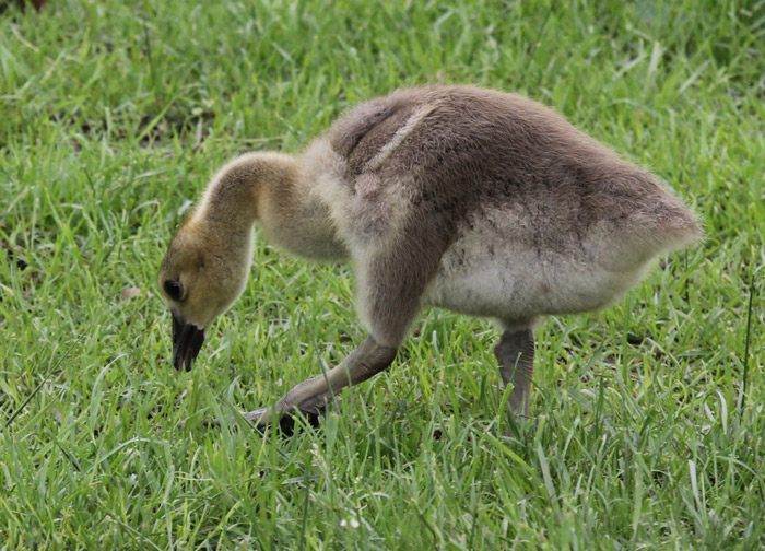 36-52911 Canada Goose gosling feeding in grass in the Children's Garden at