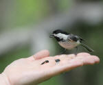 67-52811 Black-capped Chickadee feeding from Tracy's hand, Kensington