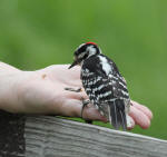 90-52811 Downy Woodpecker feeding from Tracy's hand, Kensington Metropark,