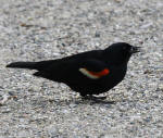 228-52811 A Red-winged Blackbird on the boardwalk along the lake begging