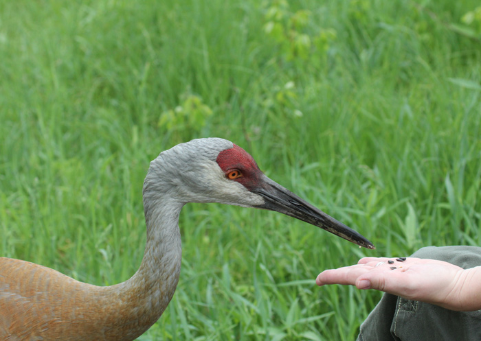 seeds in her extended hand. Kensington Metropark, Milford, MI, 28