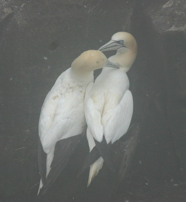 Northern Gannet pair in fog at Cape St. Mary's, Newf., 5 July 2008 |