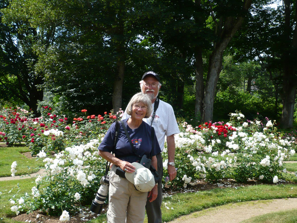 Bill and Kay in the rose garden in Annapolis Royal, NS, 12 July 2008 |