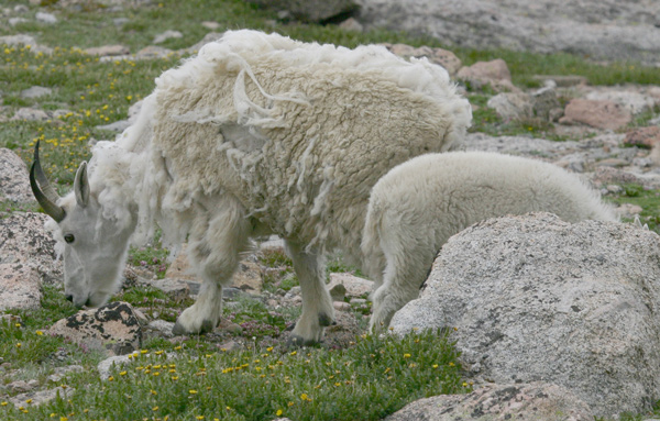 Mountain Goat mom and kid, Mt. Evans, CO, 30 Jul 2004 |