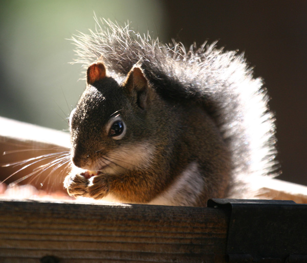 Same female pine squirrel, yard, Evergreen, CO, 21 Aug 2004 |