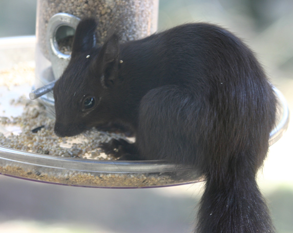Male black Abert's squirrel, yard, Evergreen, CO, 26 Aug 2004 |